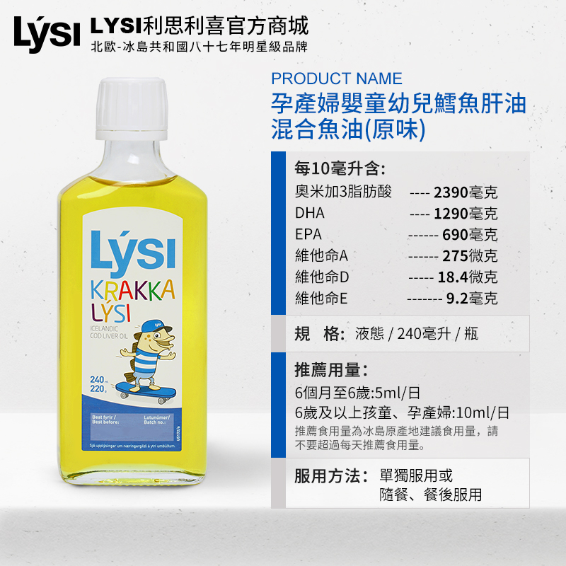 LYSI利思利喜冰島進口天然深海鱈魚肝油+金槍魚油混合魚油 240ml