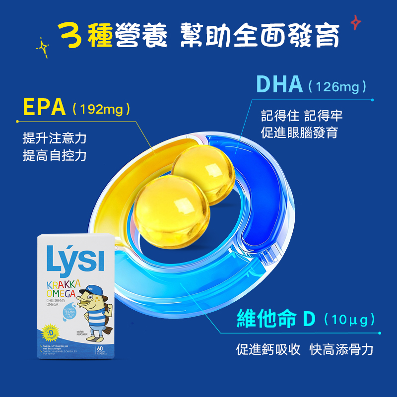 Lysi利思利喜冰島進口兒童dha魚油果味軟糖寶寶兒童補腦記憶力保護視力 60粒*2盒