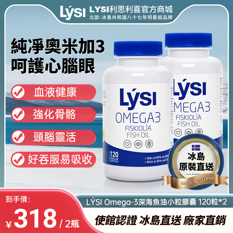LYSI利思利喜冰島原裝天然奧米加3深海魚油膠囊成人中老人通血管 120粒*2瓶